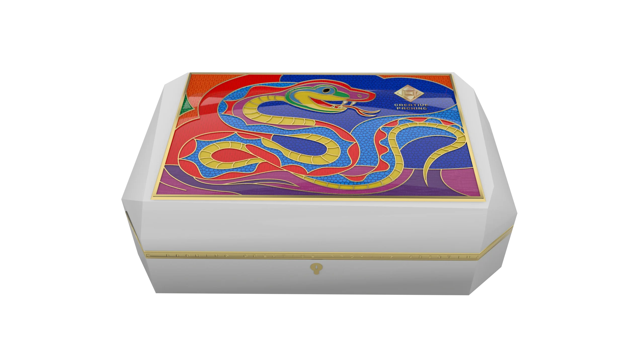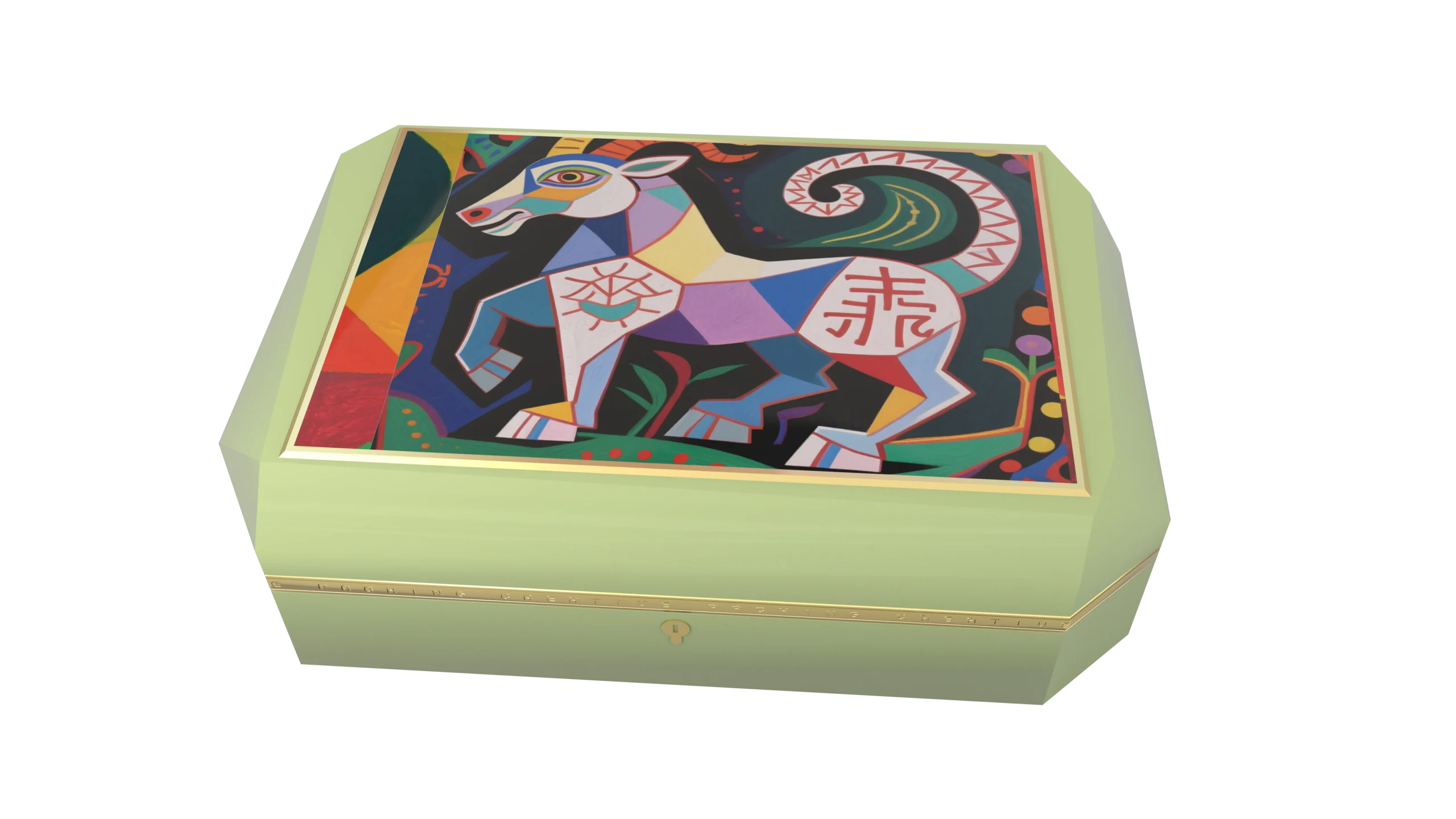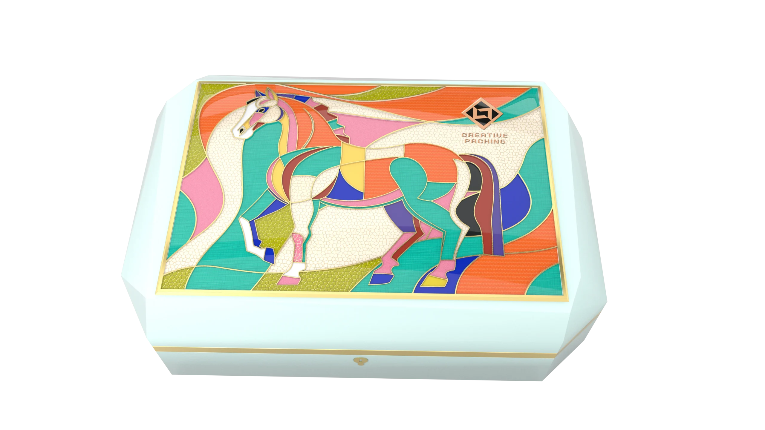 Cubism x Chinese Zodiac: The top of the box corresponds to one of the twelve zodiac animals, including the rat, ox, and tiger. Geometric cuts and highly saturated Spanish colors create a 360° unobstructed visual experience.